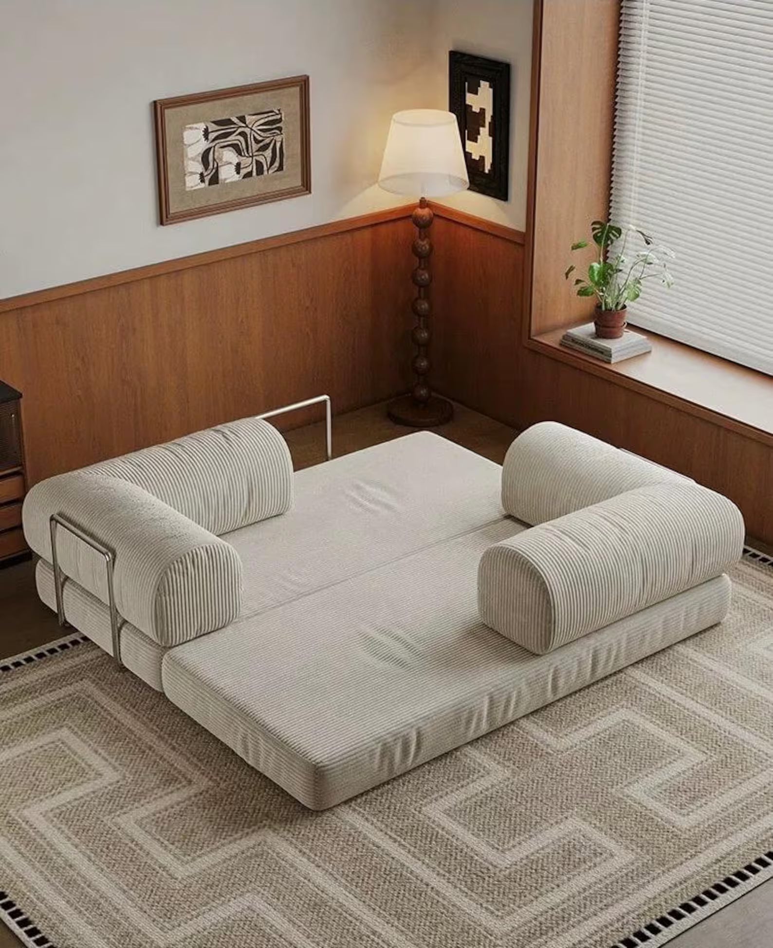 - Revêtement : Velours côtelé (lavable et résistant)